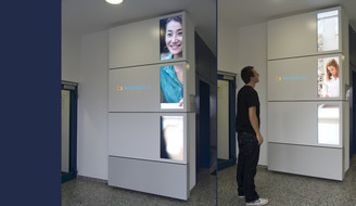 A website, 32 little TFT monitors and a barcode reader were connected to form a system where users can upload their favorite photos, and next time they enter the installation the system shows their collection on the monitors.